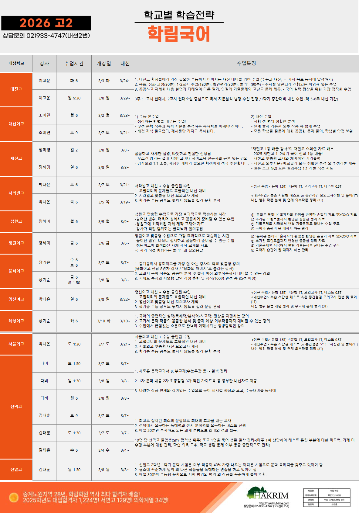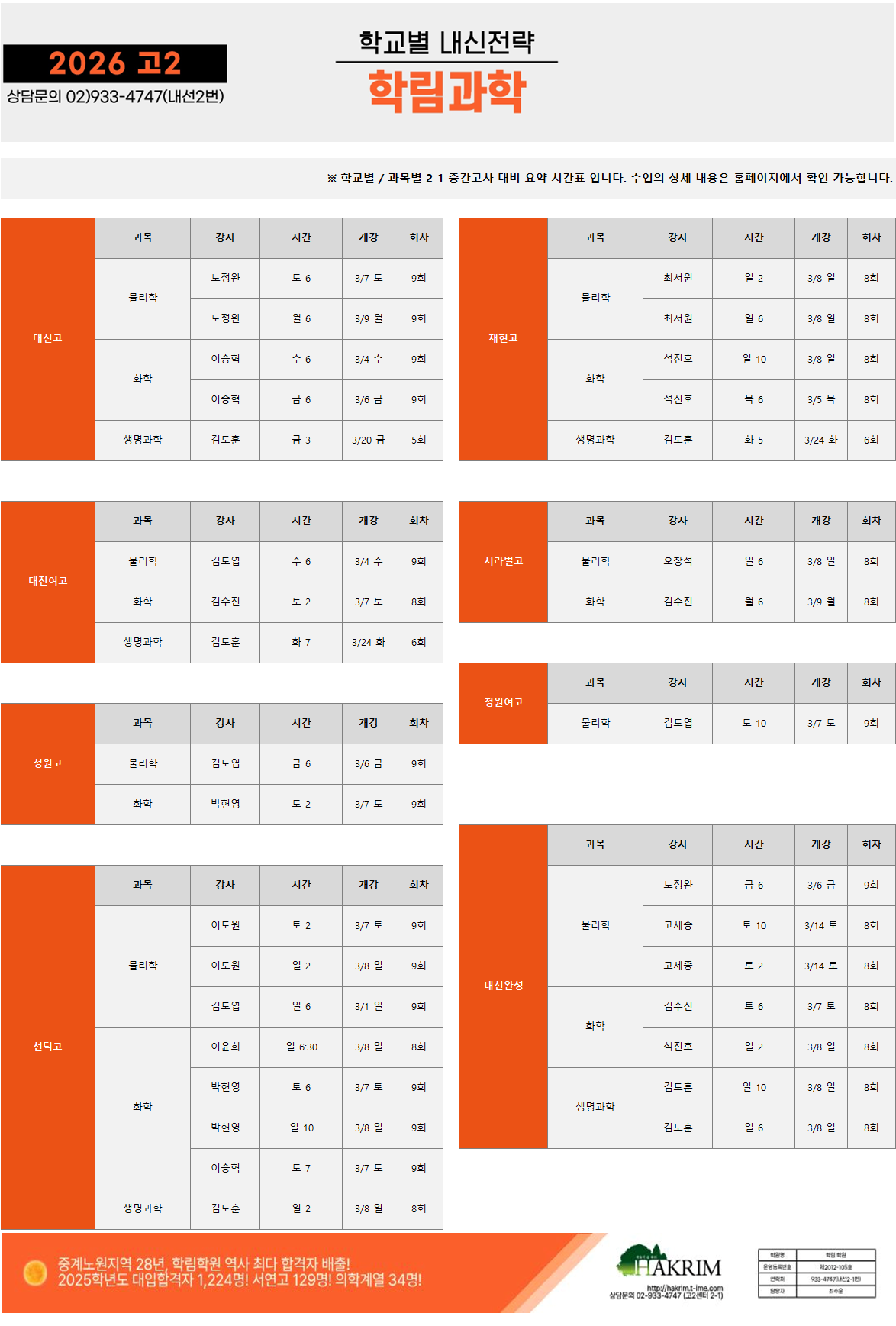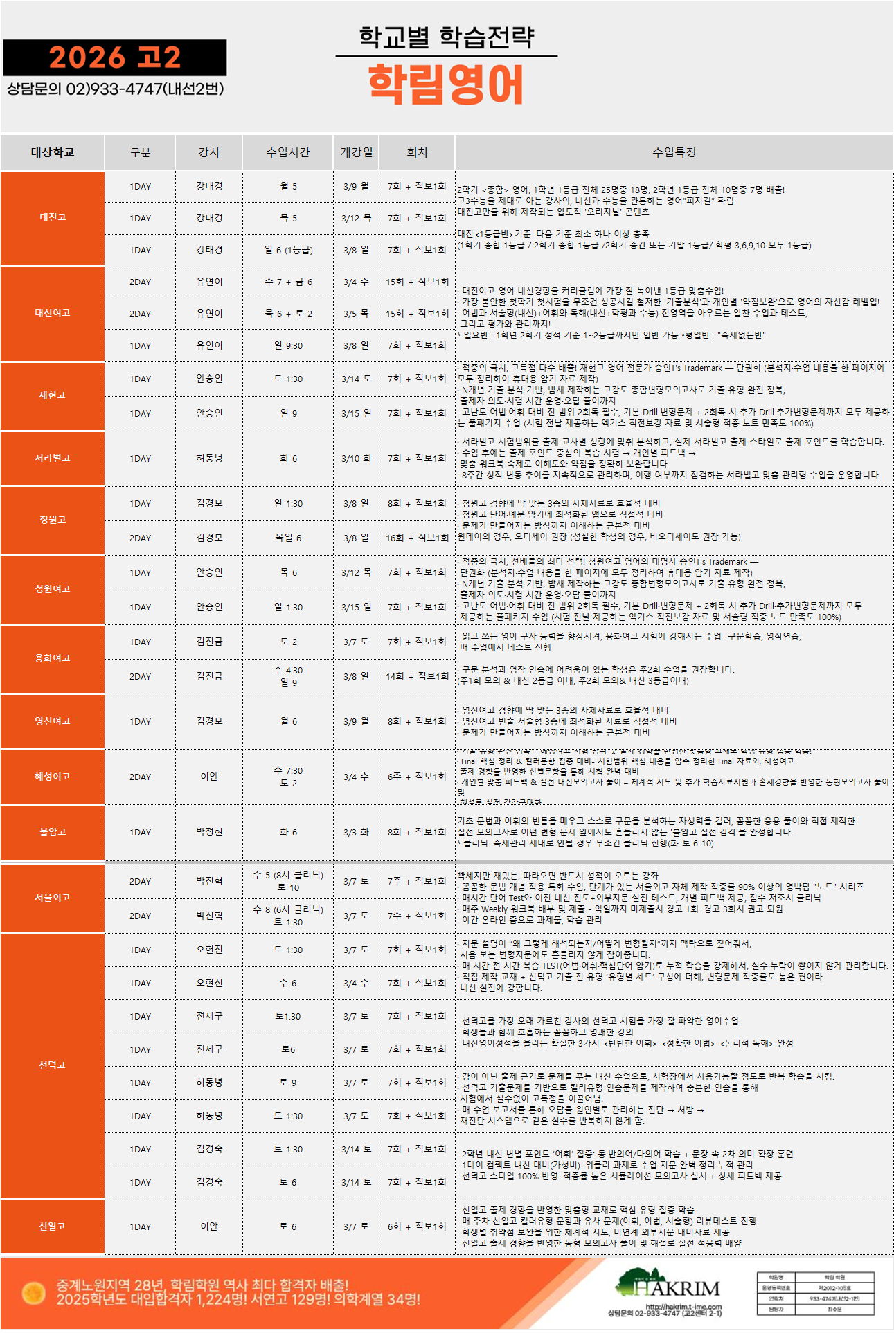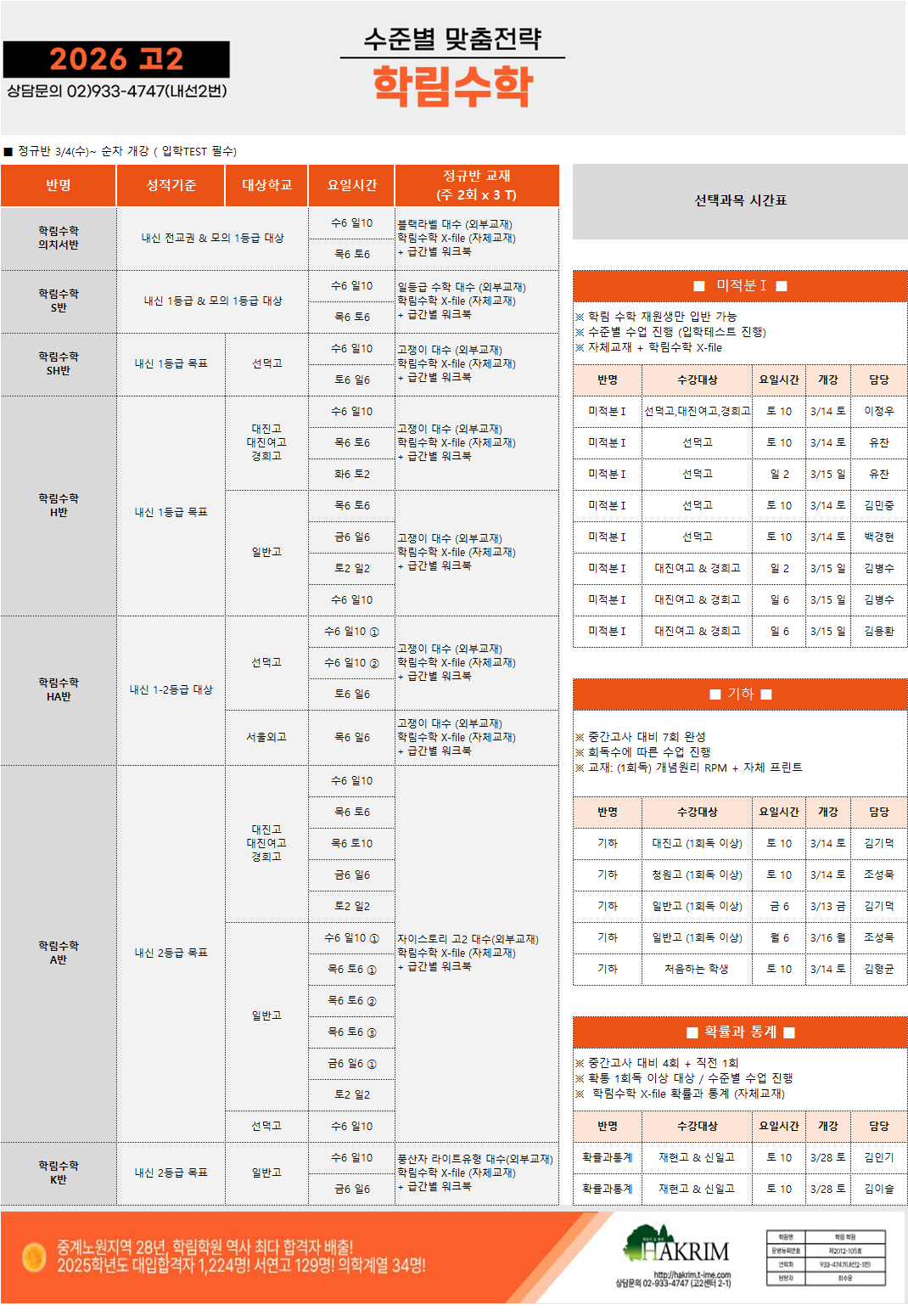 [2026_고2] 3월 개강 시간표