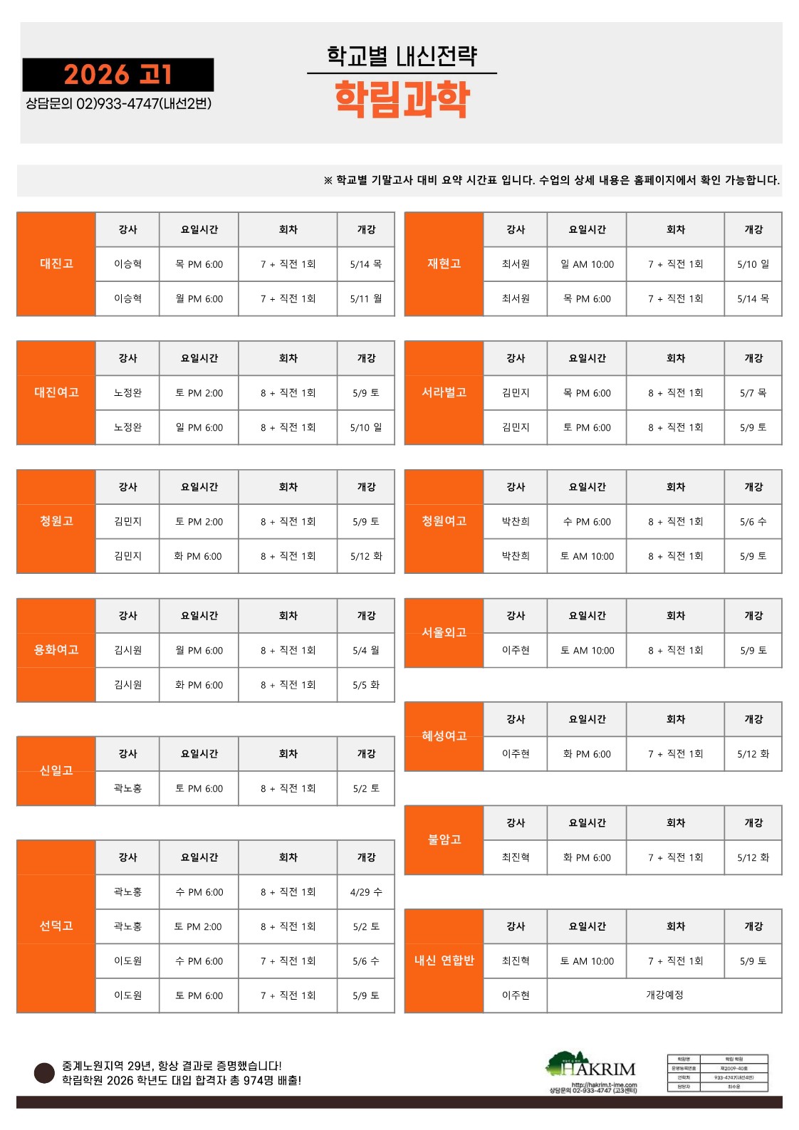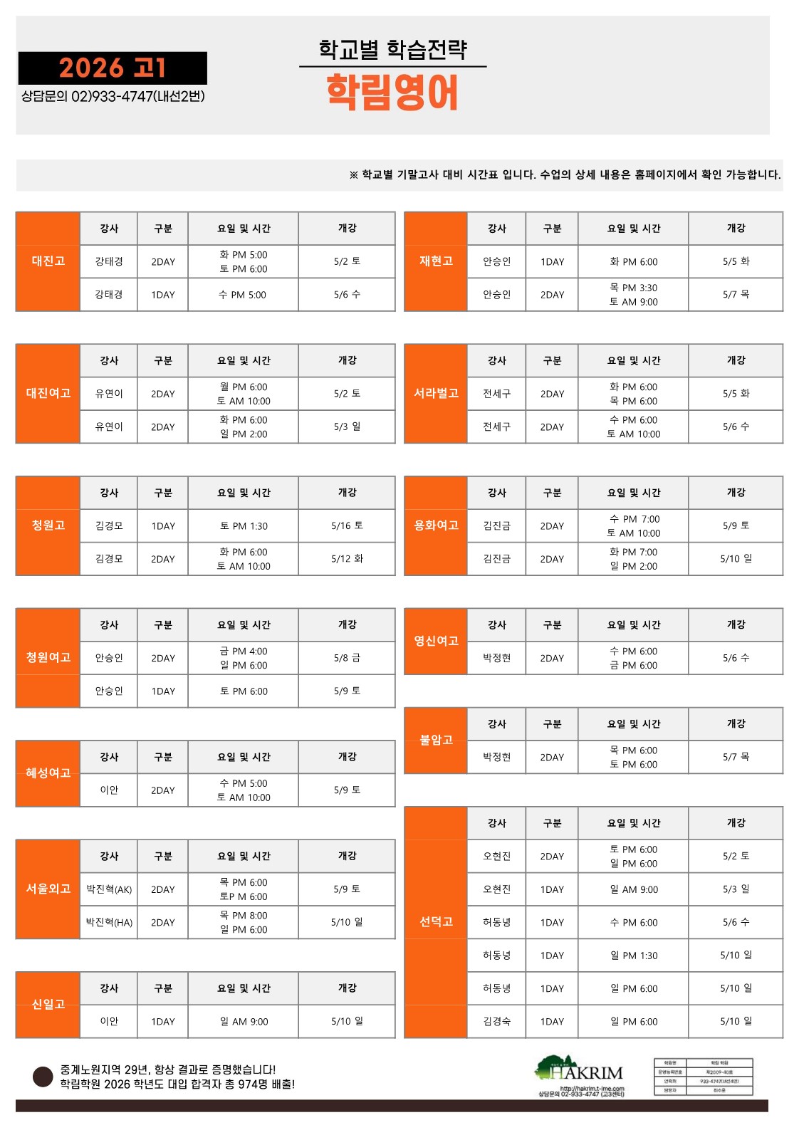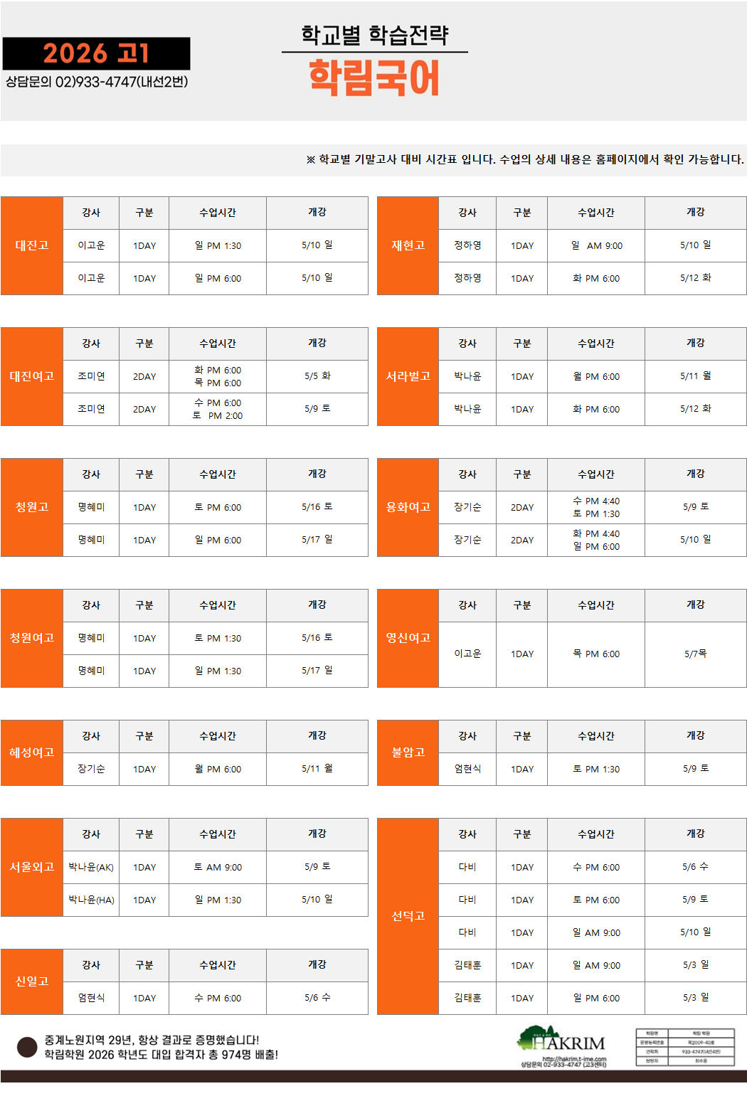 [2026_고1]5월 개강 시간표